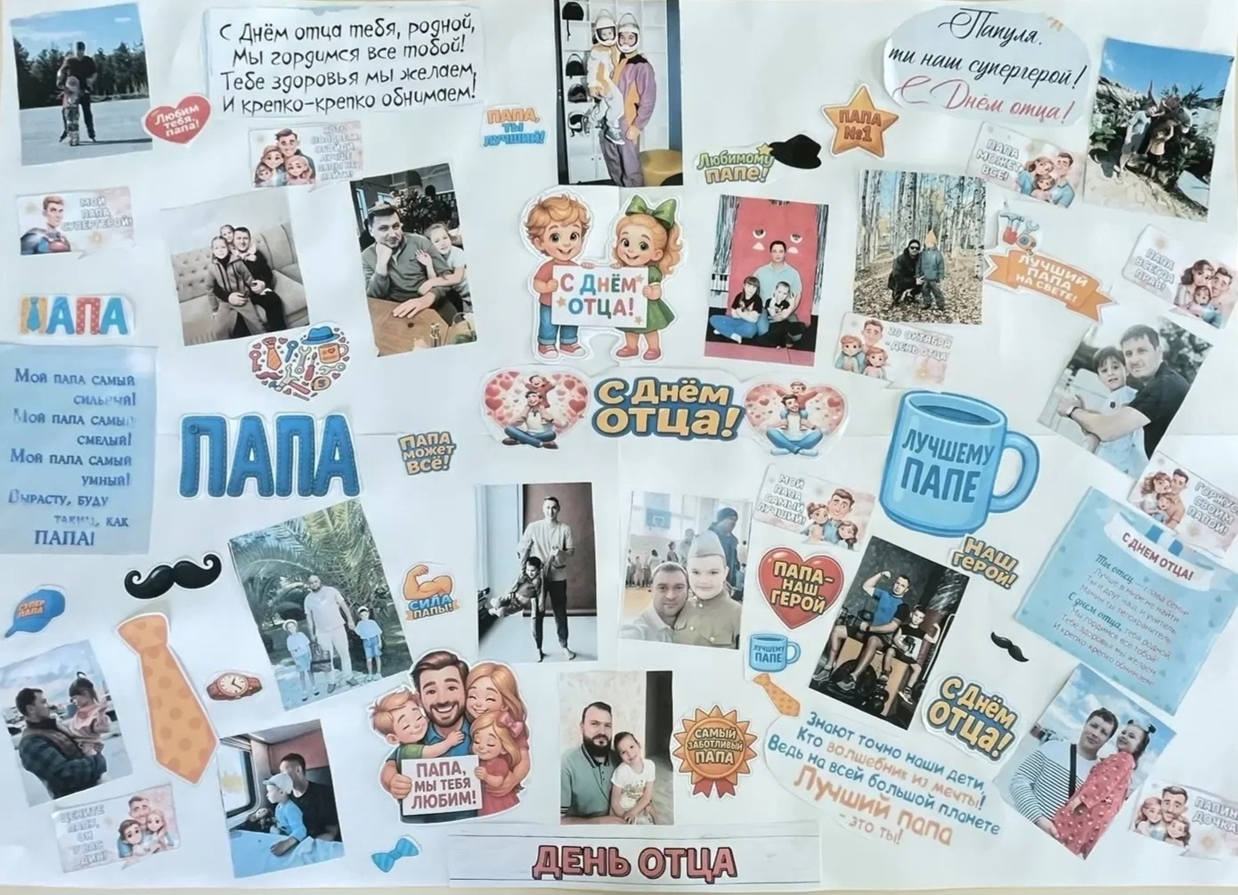 В преддверии празднования Дня отца в России во всех группах нашего детского сада прошли мероприятия, приуроченные к этому празднику. Были проведены интересные тематические беседы "Папа-это звучит гордо", "Мой папа лучше всех", оформлены стенгазеты "Лучший в мире папа", "Мой папа - лучший друг!", "У нас есть герой, мы зовем его "Папа!".