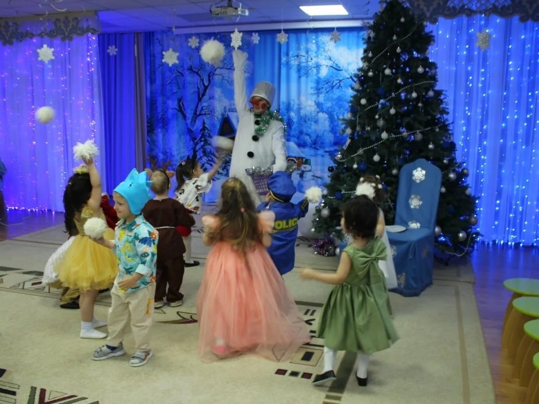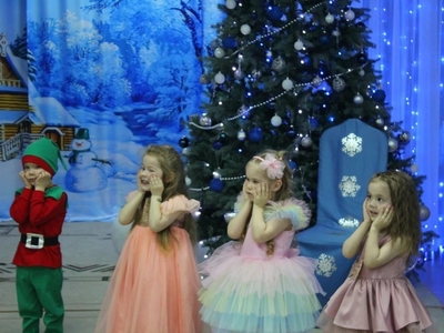 Сегодня первыми на утреннике встретились с Дедушкой Морозом и Снегурочкой воспитанники групп младшего дошкольного возраста.