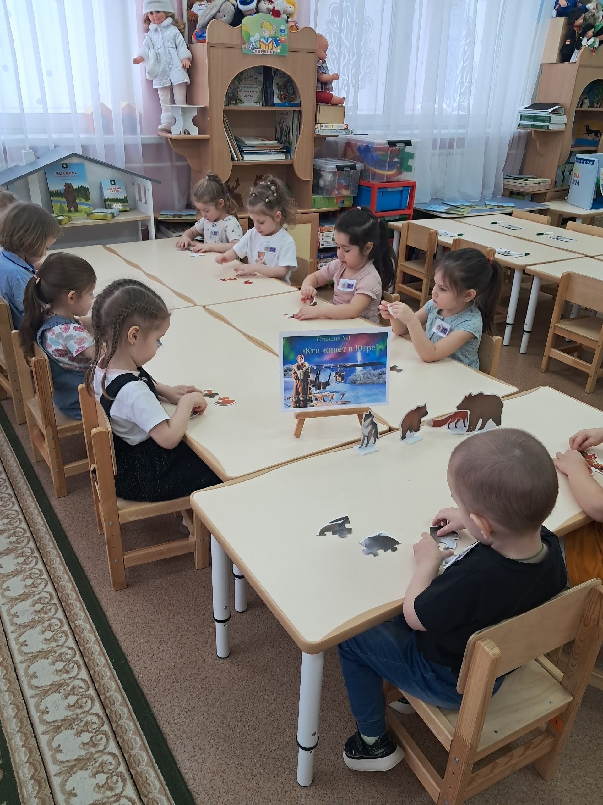 Воспитанники группы младшего дошкольного возраста от 3 до 4 лет "Югорка" погрузились в увлекательное приключение. Используя учебно-методический комплект "Моя Югра. Край, в котором я живу" ребята решали различные головоломки, развивая внимание, мышление и воображение. Квест «Путешествие по Югре» позволил детям познакомиться с живой и неживой природой Ханты-Мансийского автономного округа-Югры: помочь глухарю добраться до глухарки, найти всех обитателей леса, прислушаться и отгадать звуки природы.
