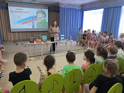 Интересный гость побывал в нашем детском саду — библиотекарь! Сотрудник детской библиотеки № 4 познакомила ребят с миром книг, рассказав, как важно читать и почему книги — лучшие друзья каждого ребенка. С собой для чтения детям гостья принесла подборку книг к дню Защитника Отечества.